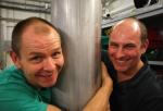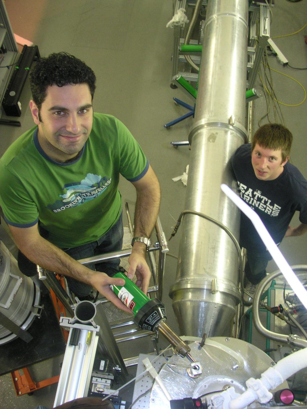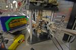 The 7 Tesla superconducting magnet on beam line BM26B. Giuseppe Portale and Wim Bras operating it over a weekend shift for experiments on liquid crystals.