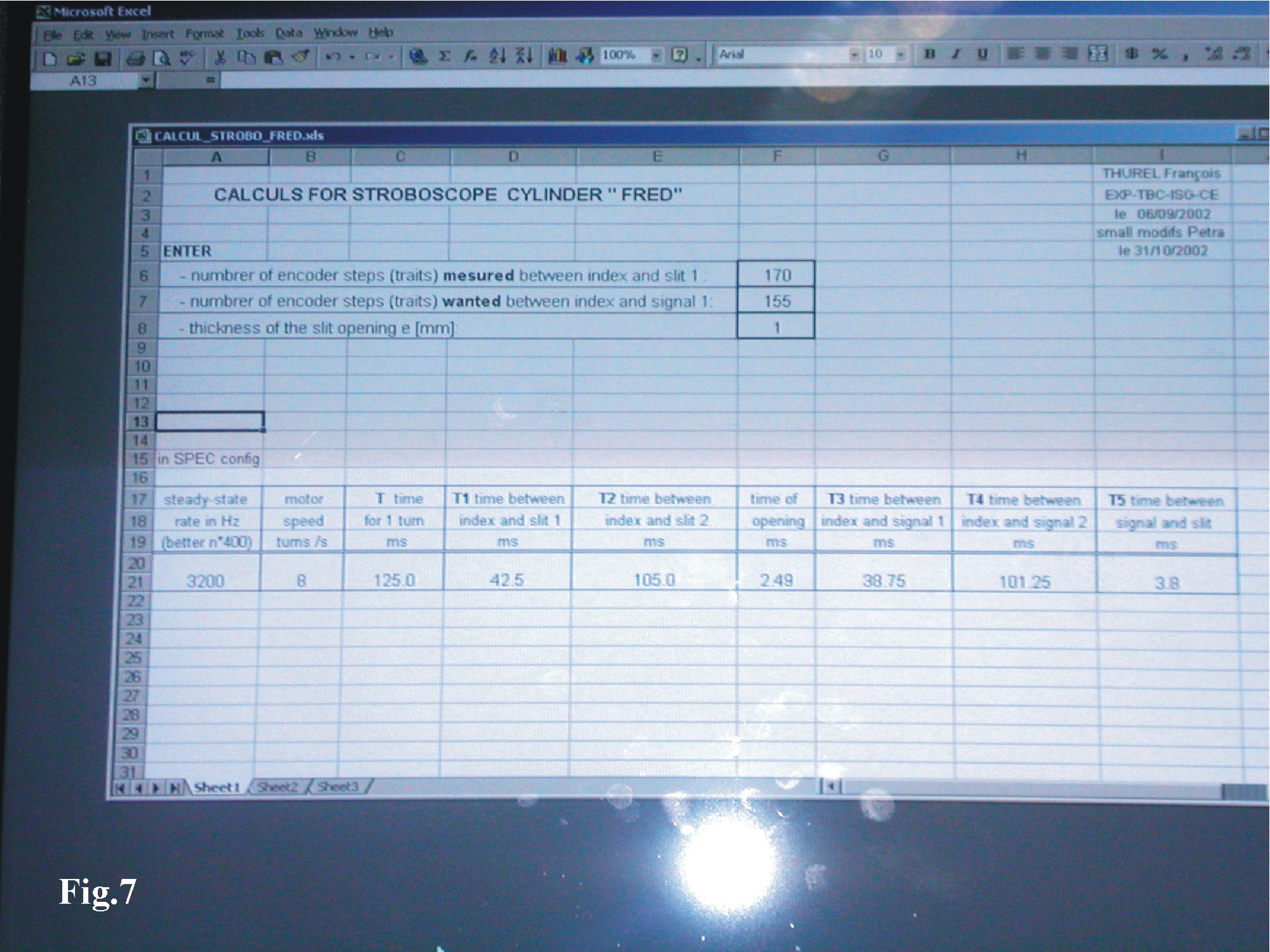 The exceed file CALCUL_STROBO.xls allows a quick calculations of the experimental parameters. It is installed on PC CHEOPS in the Control hutch, dir: F/strobo. Figure 7 shows an example of this file.