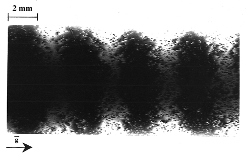 = 0.40 Å, 022-reflection (diffraction vector parallel to the horizontal image border). The distance between the Moiré fringes is 3 µm, which leads to relative deformations of about 10-7. The small points visible on the topograph are images of threading dislocation pairs in the thin silicon layer. Dislocation density is about 4 x 104 cm-2.