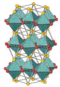 Fig. 81: The crystal structure of Si-VI. Red atoms are 11-fold and yellow atoms 10-fold co-ordinated.