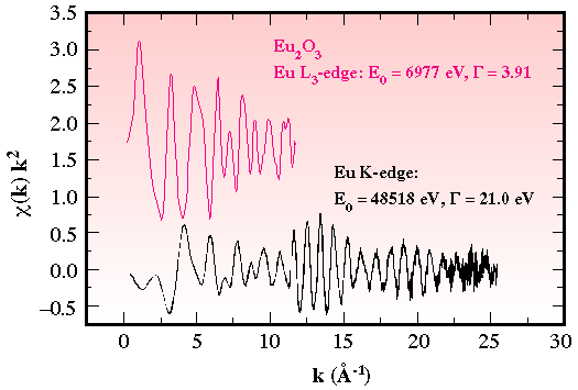 Fig. 97: EXAFS signal of europium oxide measured at the LIII and K absorption edges (T = 30k).