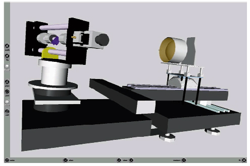 Fig. 70: A web-based 'virtual instrument'. The illustration shows a sample mounted in a test rig on ID11. All the components can be manipulated remotely to provide an accurate scan simulation. |