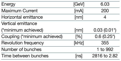 The Table 3 below presents a summary of the characteristics of the electron beam of the storage ring: