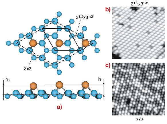 Fig. 100: Structural model (a) and STM images (b, c) for the |
