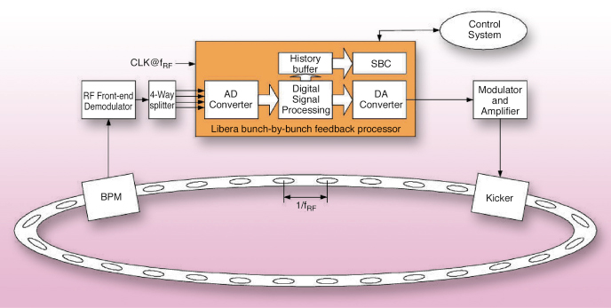 Fig. 149: Bunch-by-bunch feedback system for the damping of coupled bunch beam instabilities (from: www.i-tech.si). |