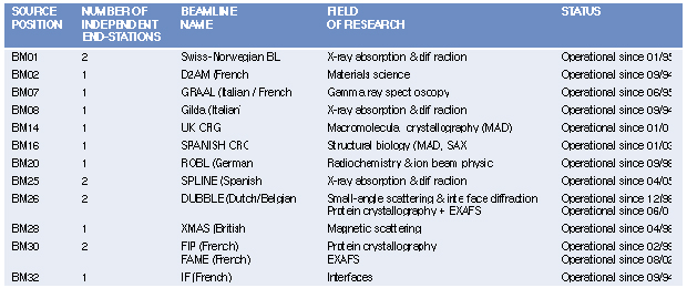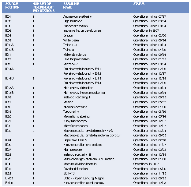 Table 7: List of the ESRF public beamlines in operation and under construction. |