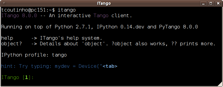 ITango [1]: PyTango Result [1]: <module 'PyTango' from ...>The