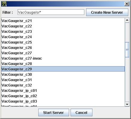 - A window with a list of all servers defined in TANGO database will be displayed.
