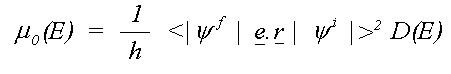 Here e is the electric vector of the photon, r the position with respect to the atomic nucleus and D(E) the energy density of final states. D(E) depends on the way the wavefunctions are normalised and is usually 1 for Rydberg states below the ionisation threshold and proportional to k, the magnitude of the photo-electron wave vector for a free electron.