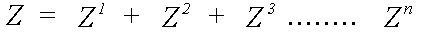 Z1 includes a sum over all atoms, excluding the central atom, Z2 a sum over all pairs of atoms i ≠ j, etc.