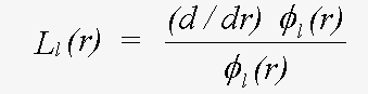 where the β are forms of complex spherical Bessel function, and the L are logarithmic derivatives of the Schrödinger (or Dirac) wave function given by: