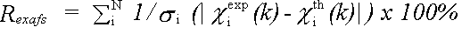 χexp(k) and χth(k) are experimental and theoretical XAFS: