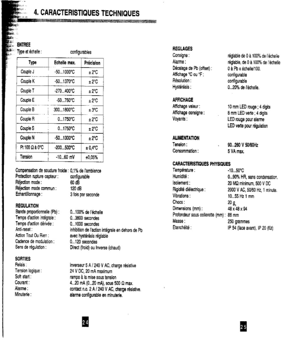 | Afficheur des régulateurs éteint | Pas d'alimentation | Vérifier le secteur, les connexions, les fusibles |