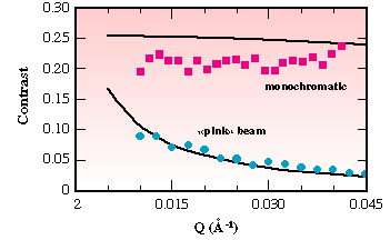 Fig. 115: Contrast of the two speckle patterns, together with the predictions from a simple model [1] of the speckle statistics.
