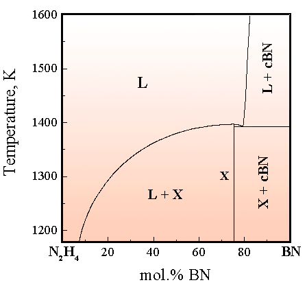 Fig. 117: A hypothetical phase diagram of the BN-N2H4 system at 4 GPa.
