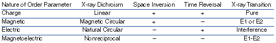Recent work by scientists in the ESRF's Theory Group [4] has shown that E1-E2 dichroism is described by space-inversion-odd electron operators, revealing the presence of parity nonconserving interactions. XNCD and XNLD are thus sensitive to additional order parameters, which can be obtained from the following fundametal operators: the familiar orbital angular momentum L, an electric dipole n = r/r, and = (n x L L x n)/2, a magnetoelectric vector. Two classes of order parameter are identified: