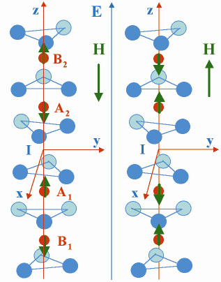 Fig. 105: Magnetic structure of the two 180° domains grown by magnetoannealing.