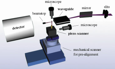 Fig. 161: Schematic view of the sub-micrometre scanning setup on ID13 with combined mirror and waveguide optics.