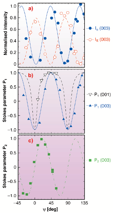 To clarify the above confusion, we have undertaken a new RXS experiment at ID20, the magnetic-scattering beamline. We performed polarisation analysis of the diffracted radiation and measured the dependence of the Np M4 resonant scattering on the azimuthal angle