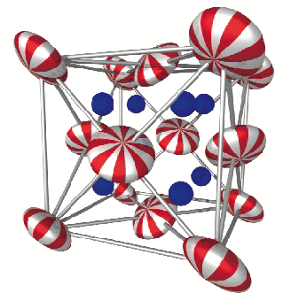 m. The ellipsoids represent the orientation of the local symmetry axis at the Np position, not the actual charge distributions. The O atoms are shown as spheres.