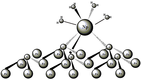 Fig. 48: Possible coordination environment of neptunium on the mackinawite surface. |