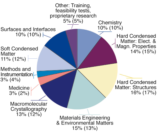 - increasing numbers of projects concerned more with applied than basic research in materials science, engineering, environmental and cultural heritage matters. As shown in Figure 170, experiments in these areas accounted for 15% of the total number of experiments carried out in the first half of 2005, an increase from 10% in 2002.