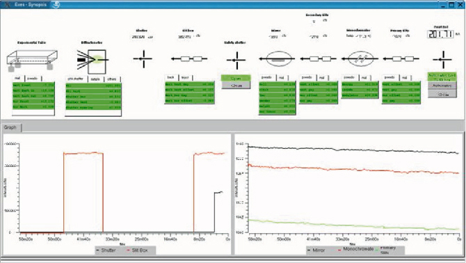 On ID23-1 a new instrument control system analyses information from various instrument position monitors and detectors so that an optimal X-ray beam can be delivered to the sample. A graphical overview, shown in Figure 89, presents the instrument status. Now that the new control system has been thoroughly tested, it will be adopted by the other ESRF MX beamlines during 2006.