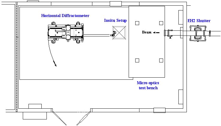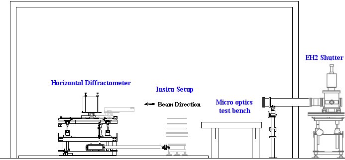 Before entering EH2 the beam may be prepared within a lead multipurpose box located in the upstream tunnel (monochromatic and white beam slits, visible light laser to visualize the beam direction, large beam fast shutter, Au grid for section topography). In EH2 the following instruments can be found: