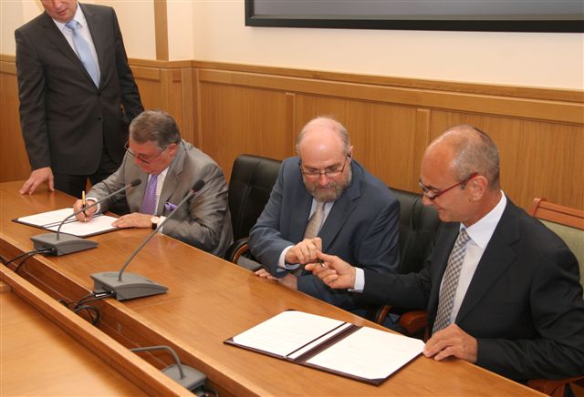 The officials signing the memorandum were Mikhail Kovalchuk, Director of the NRC-KI, Jean Moulin, ESRF Council Chairman, and Francesco Sette, ESRF Director General.