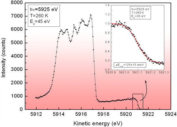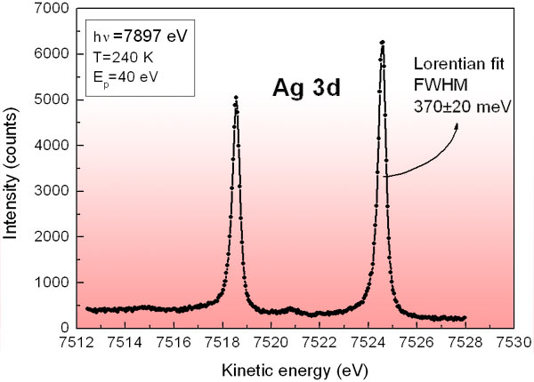- An overall energy resolution (photons + analyser) of 125 meV, measured on the Fermi level of polycristalline Ag.